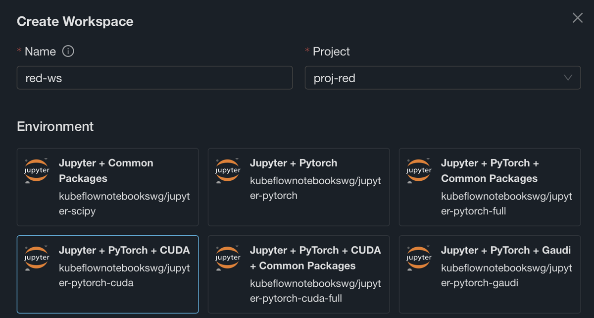 Create a new workspace, provide a name and select a project (you should only have one project available).