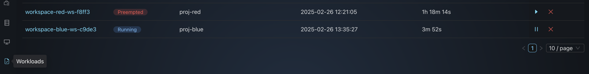 Once the blue user is done with the training and stops the workspace, the red user will be able to resume the training.