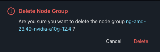On the far right side of that Node Group’s entry, click the trash-can (delete) icon. This will bring up a confirmation dialog box. -
