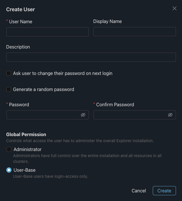 Occasionally, you may need to update a user’s display name, reset their password, or change their global permission level. The Edit User dialog allows you to adjust these settings and enforce security best practices: