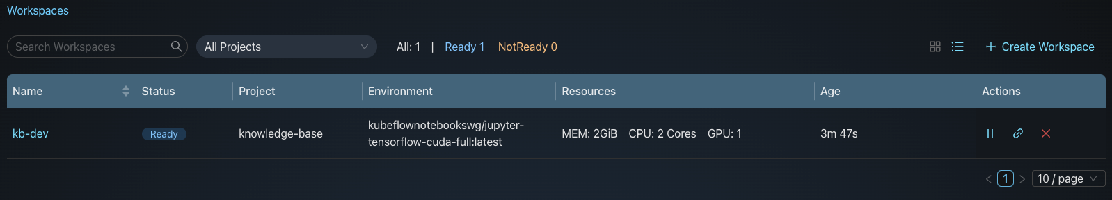 - Associated Volumes: Deleting a Workspace does not automatically remove attached volumes (PVCs). If those volumes are no longer needed, you can delete them from the Storage section.