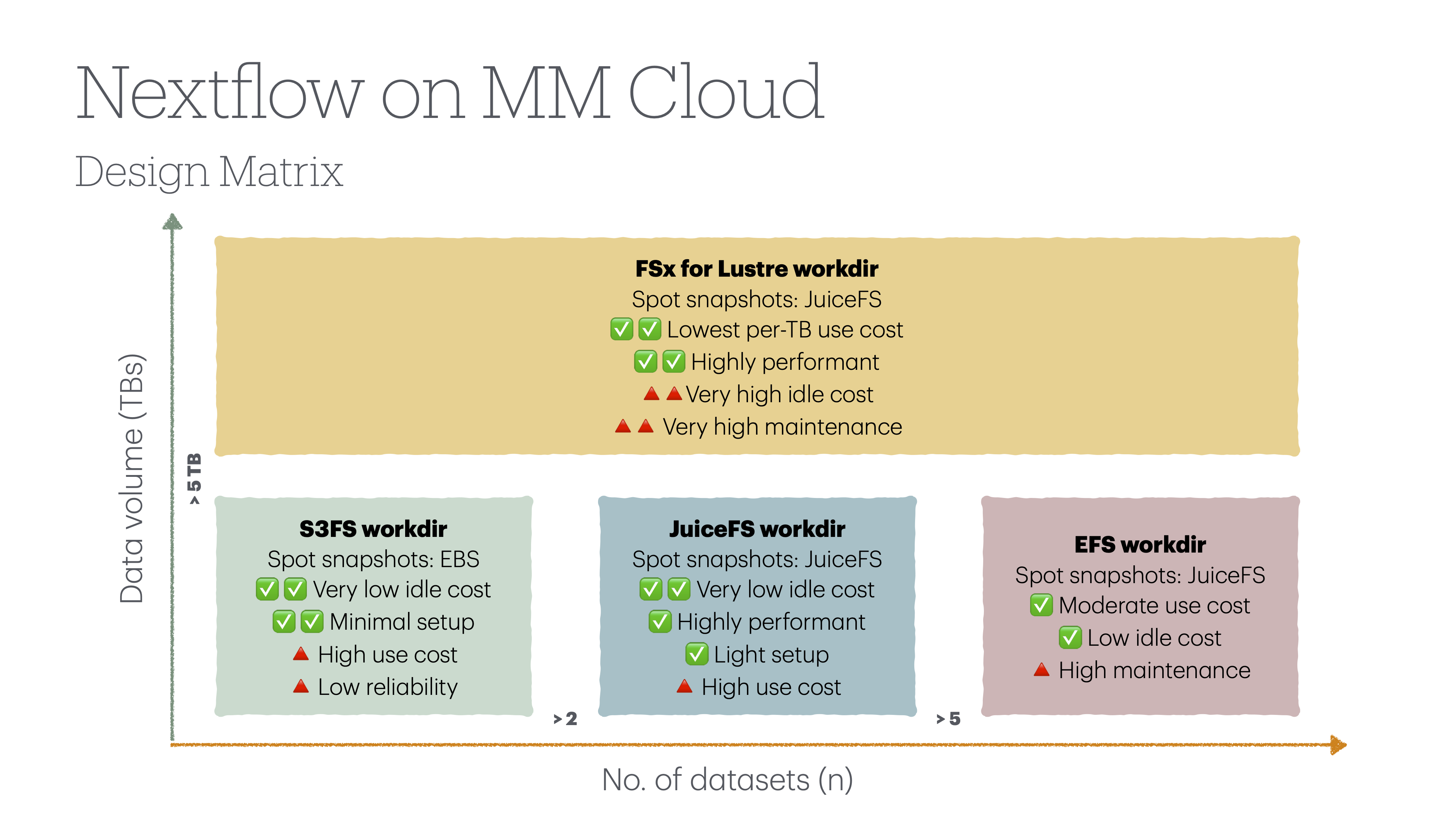 Here is a comparison of the various files systems supported for the Nextflow workdir.